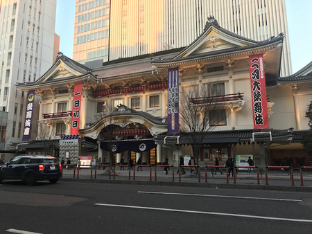 東銀座で二月歌舞伎の垂れ幕を見ながら、帰路につき、