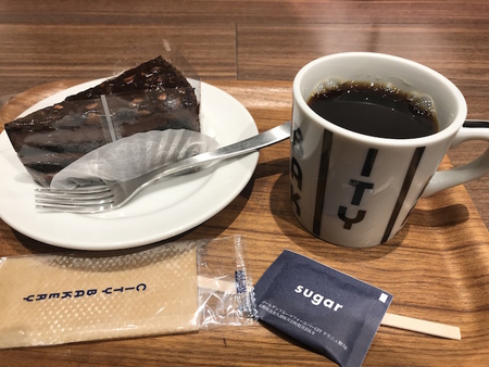 コーヒーとケーキでiphone開いたところ「圏外」と。