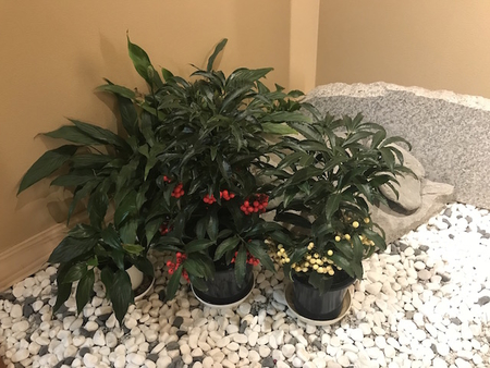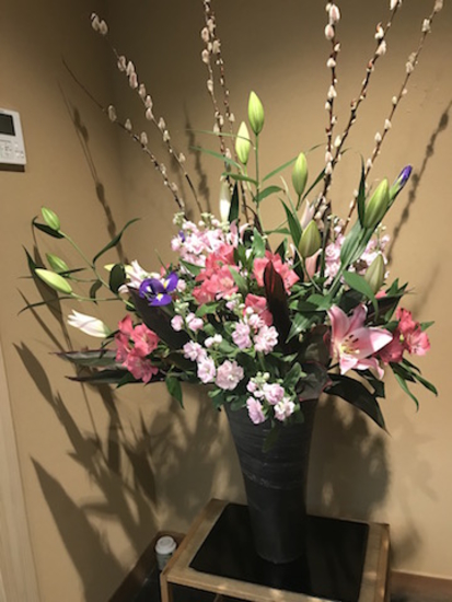 宿のちょっとした飾り付けや置物、生花に心安らぎ、