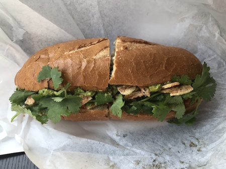 フランスパンに挟んである中身が、盛りだくさんのベトナム味。