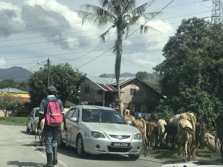 前回ペナンでは「牛飼い」がいなかったけれど、こちらイポーでは付き人がいました。