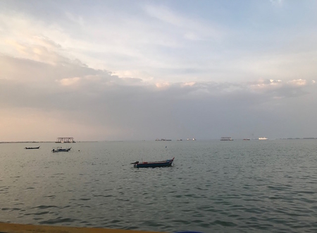 海岸の夕日を眺めながら、屋台村で麺類頂いたりも。