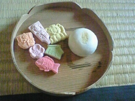 先生は可愛い干菓子を持って来られました。