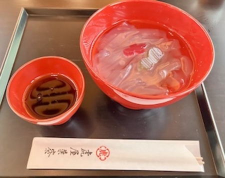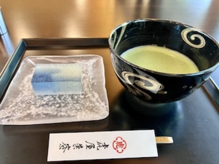 買い物のあとはお隣の「虎屋菓寮」でひと休み。葛切りが美味しそうだったので先ずは「葛切」、季節の羊羹「水の宿」とお抹茶を追加で頂きました。