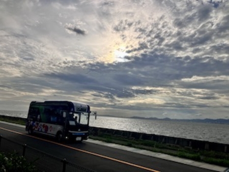一度訪れたかった海辺の休憩所、さすがに広々とした場所で、軽食とドリンク買って海辺で夕暮れの景色を楽しみました。日中は日差しが強くても、夕方からの風は心地よく、日没近くまで時間を過ごしてからリング方面へ向かいました。