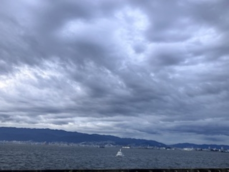 ゲート入るのには20分ほど並び、入ってからの広い通路にはショップでの買い物をする人たちの並ぶ列が続いていて、ちょっと歩行困難な感じだったので、まずは西の果ての海側でゆっくりすこることに。