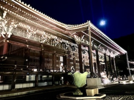 連れ合いたちはお堂でお坊様のお話を聞き、私だけはライトアップされた寺院の庭をあちこち散策。