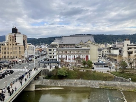 鴨川の向かいには南座が見え、午前中あれほど青空だったのが、京都の町中は曇り空の冬景色になりました。