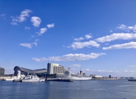 レストランから大丸やお洒落なブランド店が立ち並ぶ元町エリアを散策、20〜30分ほど歩いてメリケンパークに到着です。