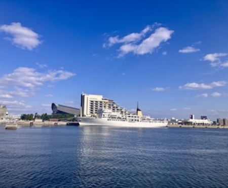 神戸の海を眺めて、いよいよ瀬戸内海の船旅が始まるのだな・・と実感。