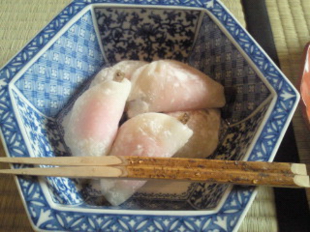 朝からキモノ着て、三越で注文していた「花びら餅」を受け取り、
