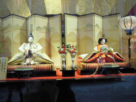 日本橋高島屋のショーウインドーは「ひな飾り」一色、