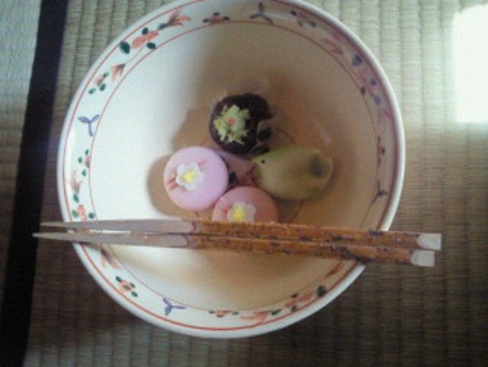 お休みの方々には、写メで春らしい茶室の様子をお送りしました。