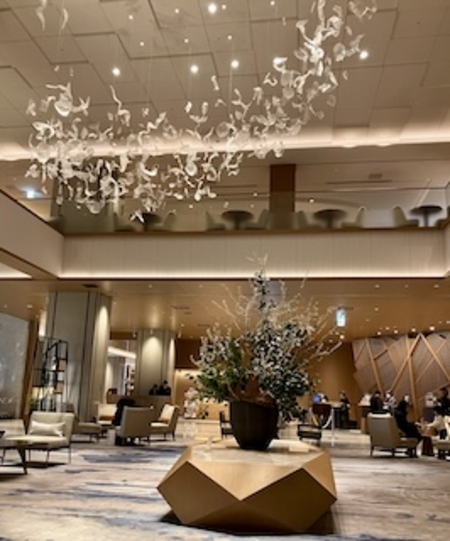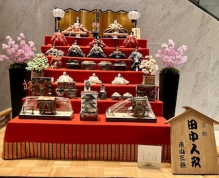 ホテルロビーは立派で、京都の雛飾り(お内裏様とお雛様の左右が違う)が美しく飾ってあり、ゆっくり寛げる雰囲気です。