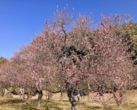 大阪市内や京都市内の梅林と比べると野生的で自然な感じが新鮮。