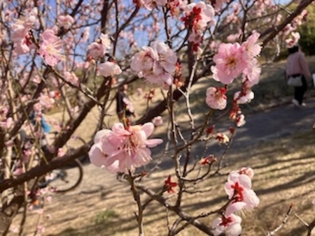 梅林をはじめ菖蒲園や紫陽花園、もみじ谷など季節の植物がたくさんあり、今回は3人で梅のお花見です。