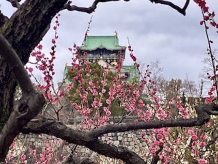 2月が終わる前に、連れ合いと大阪城公園の梅林へ。この時期、毎年梅のお花見に訪れる場所です。