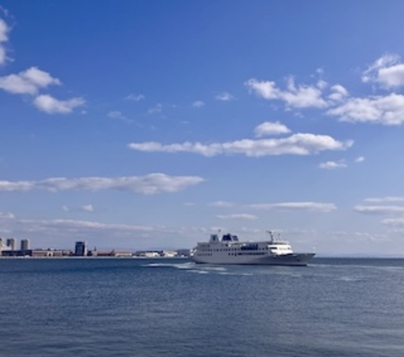 神戸の海を眺めて、いよいよ瀬戸内海の船旅が始まるのだな・・と実感。