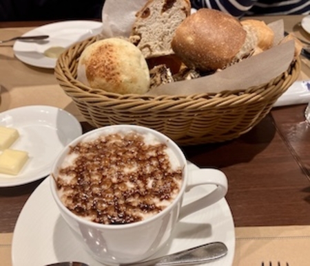 30分の待ち時間がすっかり過ぎてケーキ屋さんでゆっくりしていたら「席が空きました」のコールがかかって、しっかり1時間ほど待ってからのパン屋さんへ。